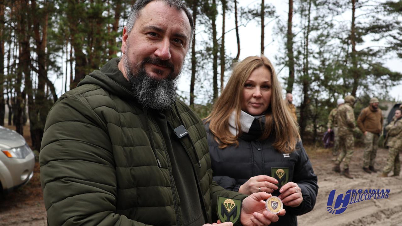 На знак подяки працівникам авіакомпанії «Українські вертольоти» командир Богдан Януш вручив від командира шеврони та коїн аеромобільного батальйону 79-ої окремої десантно-штурмової Таврійської бригади.