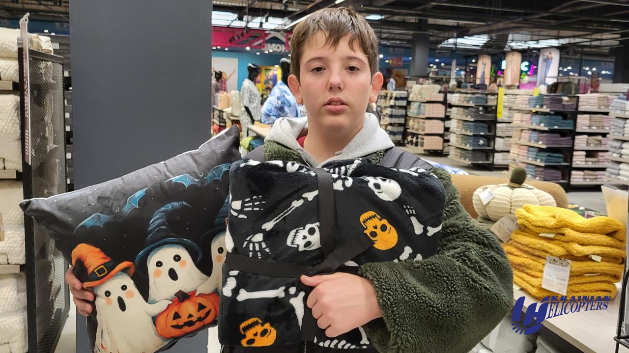 Представники авіакомпанії «Українські вертольоти» залюбки відправились із хлопцем та його бабусею-опікункою на шопінг. Похід до торговельного центру виявився дуже вдалим. Ярославу придбали усе, що він запланував, та навіть більше.