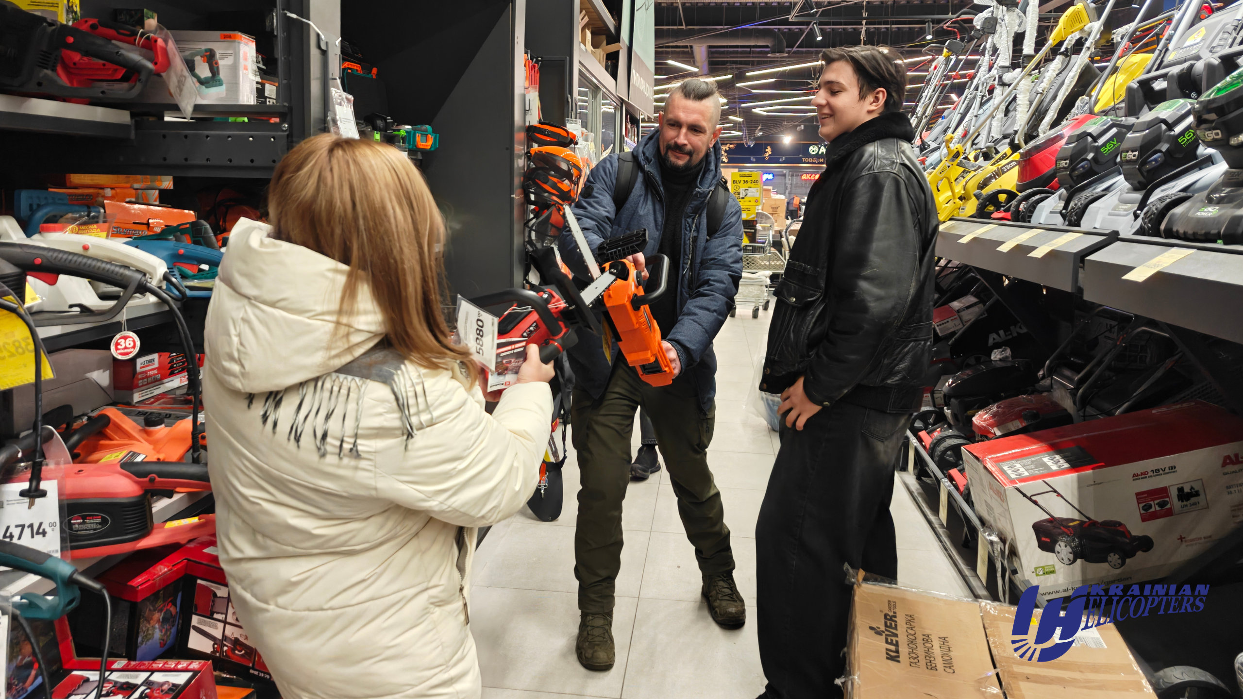 У січні для свого підопічного Ярослава з Києва колектив «Українських вертольотів» купив: гантелі, акумуляторну пилку для саду, зарядний пристрій до неї, настільну лампу з акумулятором та машинку для догляду за тканинами. Схожі покупки для хлопця — не одноразова акція, а частина щомісячної підтримки від авіаторів під керівництвом Володимира Ткаченка.