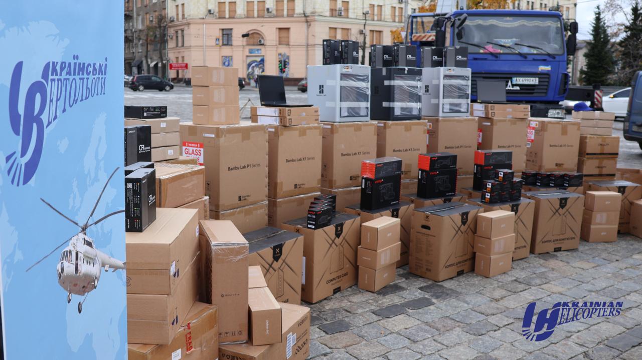 У запиті військових були 3D-принтери із витратними матеріалами та комплектуючими, системи зв'язку, мікроскопи, паяльні станції та паяльники, перфоратори, роутери і точки доступу Wi-Fi, комп'ютери та ноутбуки, відеопрогравачі, зарядні пристрої, акумуляторні батареї, шліфмашина, компресор, акумуляторні дрилі-шуруповерти та інші інструменти.«Таких засобів, на жаль, не вистачає, оскільки ця номенклатура не передбачена згідно зі «штатом». І це все кладеться на плечі нашим волонтерам. Із ПрАТ «Українські вертольоти» ми вже другий раз зустрічаємося по взаємодії. До того вони нам передавали 5 автівок Mitsubishi L200, які до цих пір виконують бойові завдання», — розказує заступник командира полку безпілотних систем "KRAKEN¹⁶⁵⁴" Третього Армійського Корпусу Олег Романов.