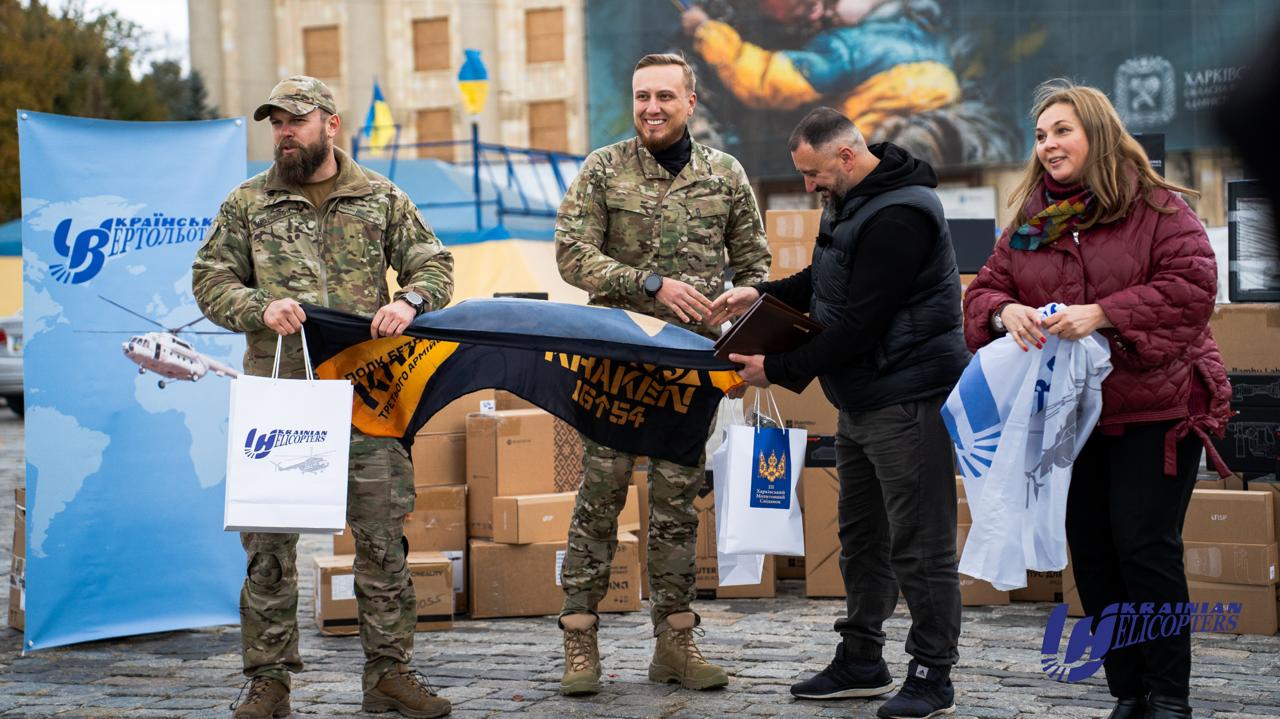 Днями працівники авіакомпанії «Українські вертольоти» відвезли до Харкова допомогу для ЗСУ. Так відбувається не вперше. Це частина діяльності авіакомпанії. У цій передачі полку безпілотних систем "KRAKEN¹⁶⁵⁴" Третьому Армійському Корпусу техніка, обладнання, інструменти та витратні матеріали на загальну суму 4,6 млн грн.