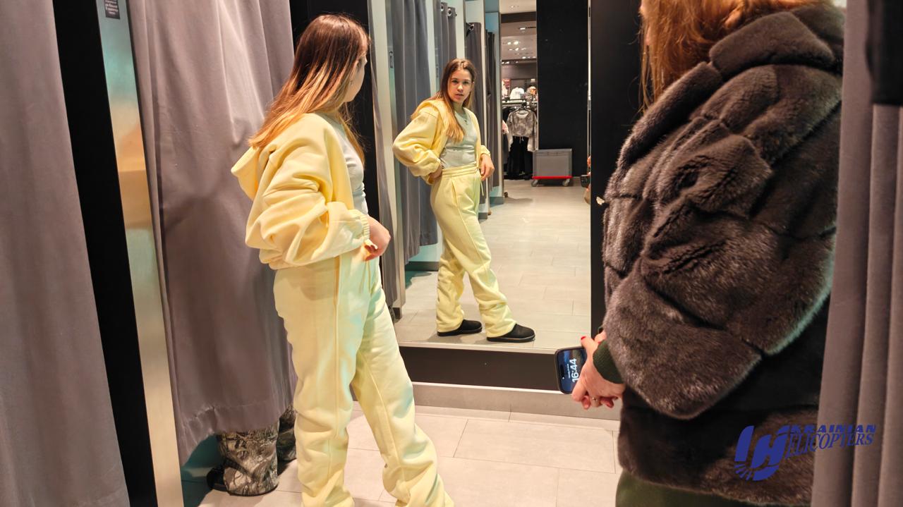 Із працівниками авіакомпанії купили багато різних речей: теплий спортивний костюм ніжно-жовтого кольору, дві пари взуття, сукню, пояс, гаманець та кілька різних футболок.