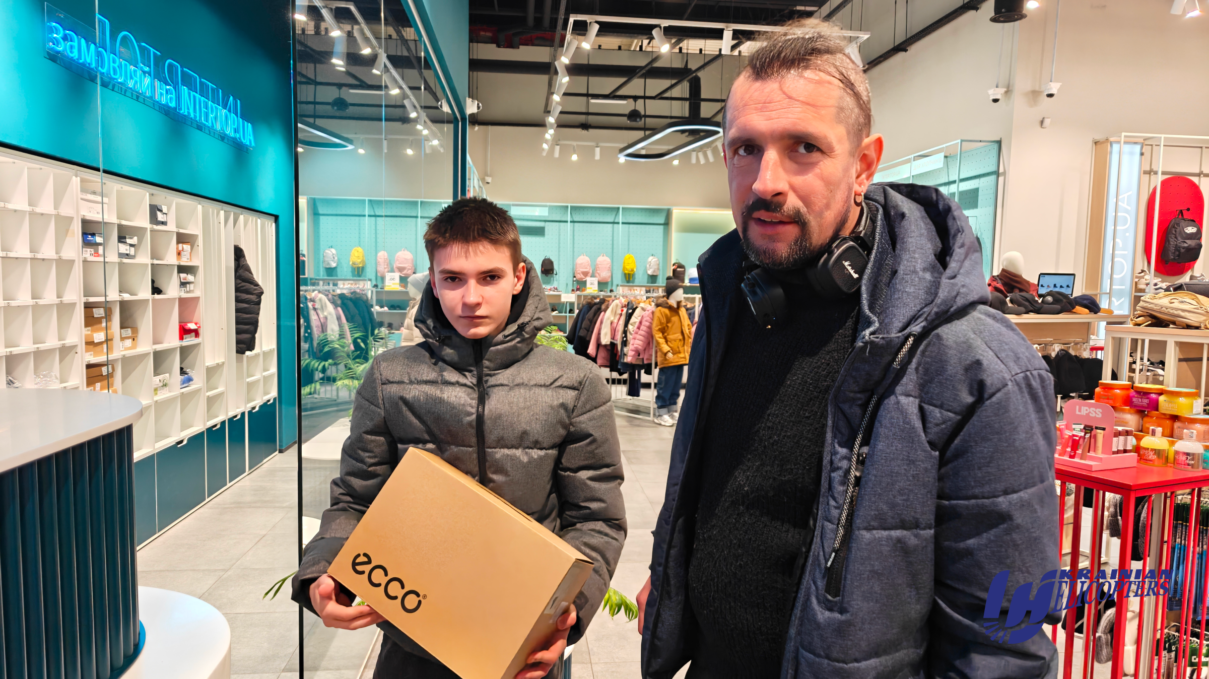 Разом із ветераном війни Костянтином купили добротні зимові черевики, які нагадують спортивні кеди, тому сподобались підлітку. А також наміряли якісні рукавиці для боротьби у спортивному відділі.