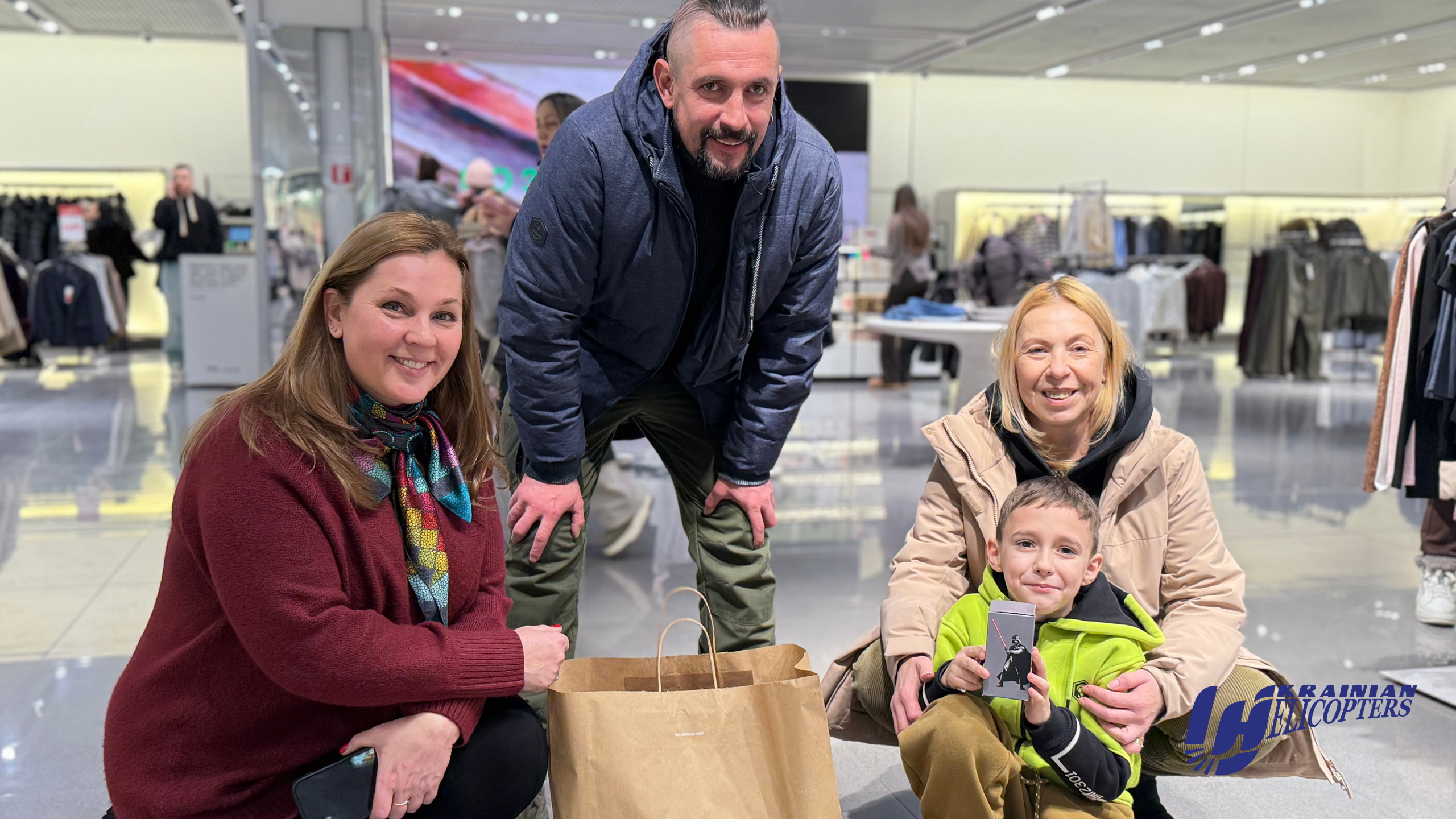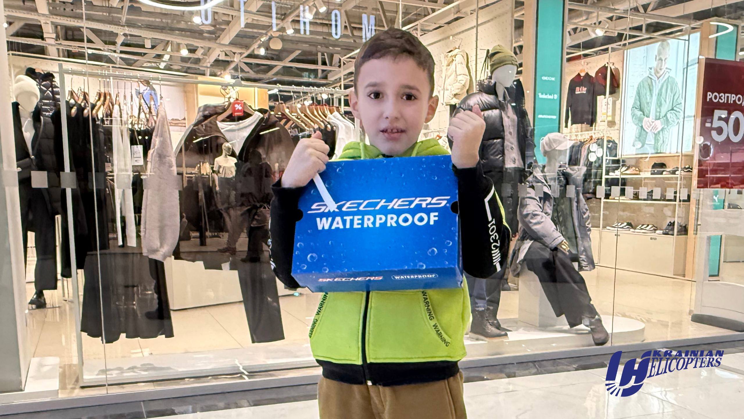 Цього разу «Українські вертольоти» зустрілись із своїм підопічним Левоном та його тіткою Олею для шопінгу. Купували малому зимове водонепроникне взуття, спортивний костюм та інші практичні речі.