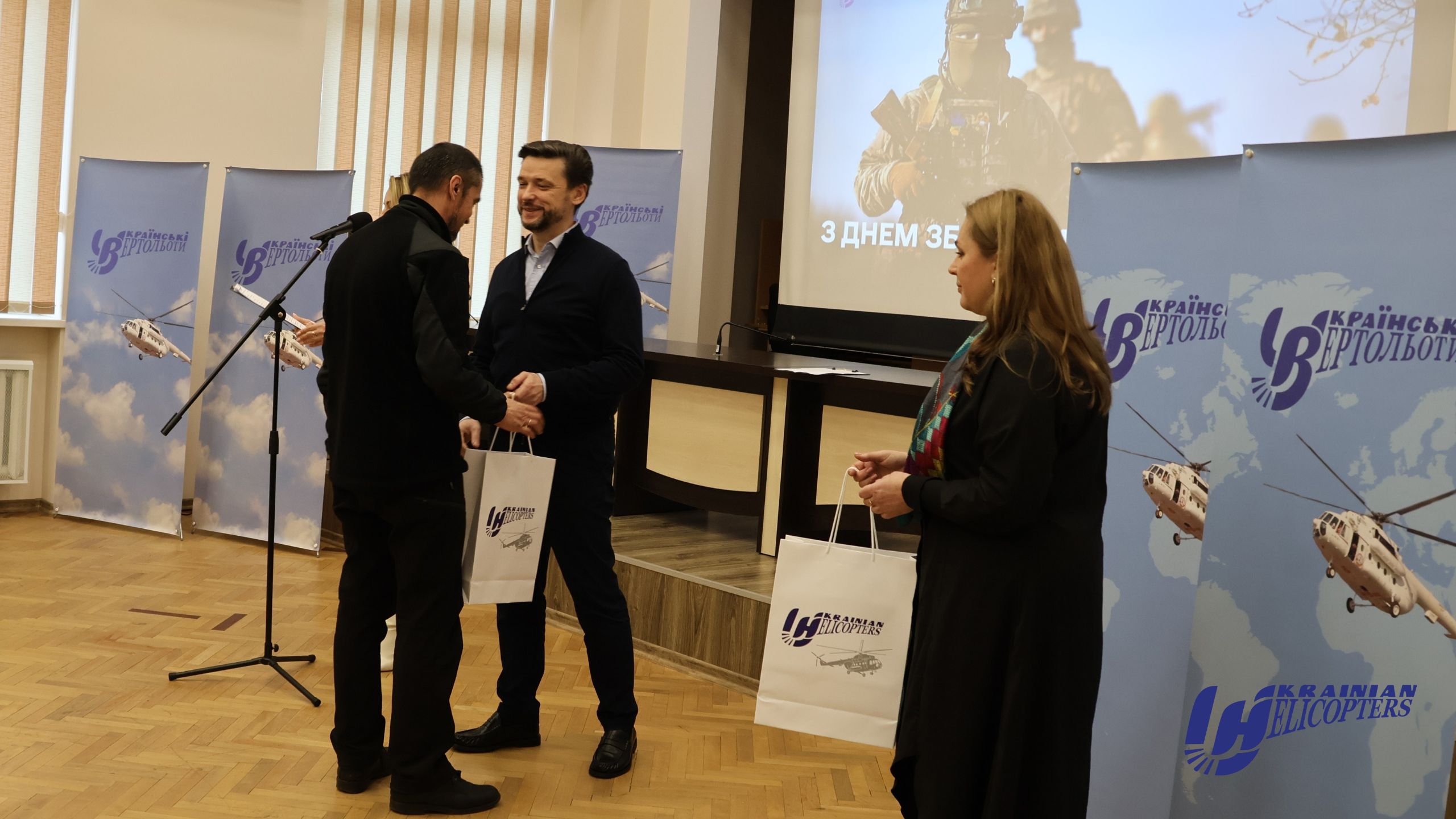 В авіакомпанії «Українські вертольоти» вручили подарунки учасникам бойових дій до дня Збройних сил України