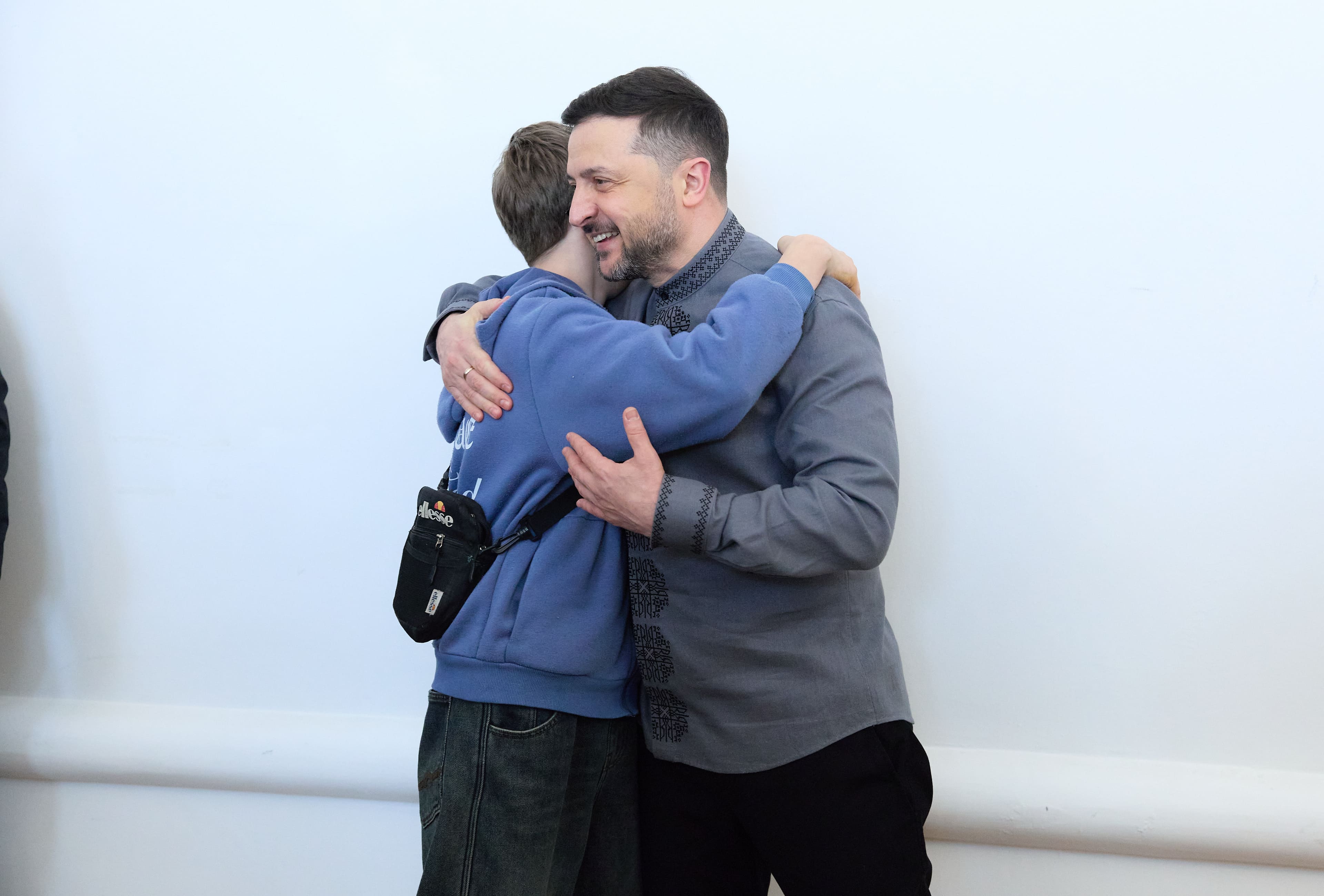 "Хочемо вас привітати з усіма святами Великодніми. Безумовно бажаю тепла, добра, світла. У вас такі усмішки прекрасні. Не втрачайте таких усмішок. Перемоги нам всім бажаємо. Слава Україні! Героям слава!", — звернувся до усіх присутніх Володимир Зеленський.
